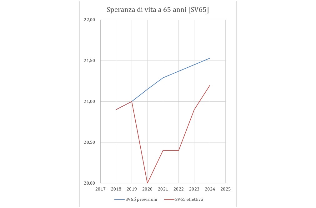 • 2021–2025: adeguamenti nulli per effetto del calo della speranza di vita durante e dopo la pandemia;